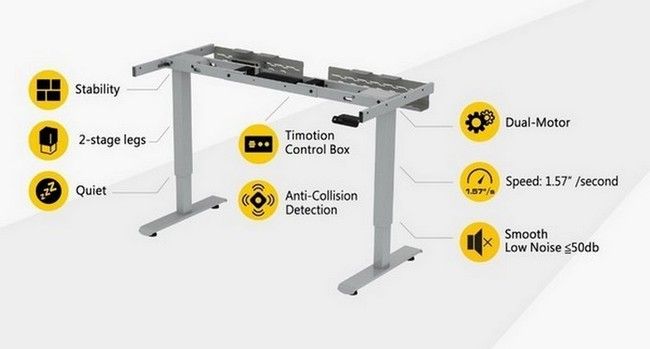 - Попередньо зібраний каркас столу: 2-рівневі стійки і рама з подвійними двигунами