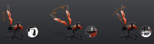 - Відкидання спинки до 160º. Нахиляйте від 90 до 160 градусів. Гнучко та зручно для підтримки бажаної постави. Сидіть прямо під час роботи або ігор і лягайте на відпочинок.