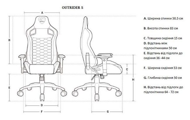 - Облягаючий дизайн з високою спинкою. Наділений ергономічним дизайном, розробленим спеціально для геймерів, COUGAR Outrider S був створений для комфортної підтримки вашого тіла. Його висока конструкція спинки буде правильно підтримувати ваш поперек, зводячи до мінімуму навантаження
