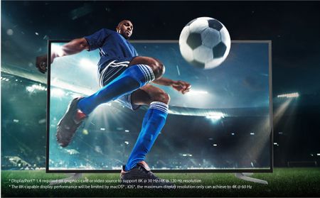 - Для досягнення роздільної здатності 8K @ 60 Гц /4K @ 144 Гц графічний процесор і джерело відеосигналу повинні підтримувати DisplayPort™ 1.4 з DSC.