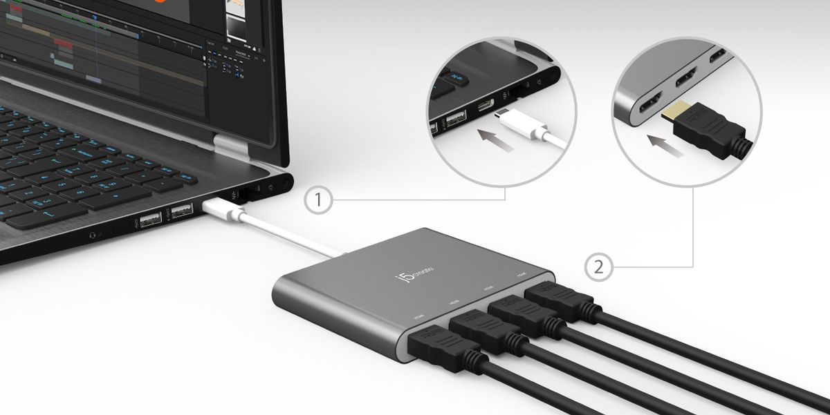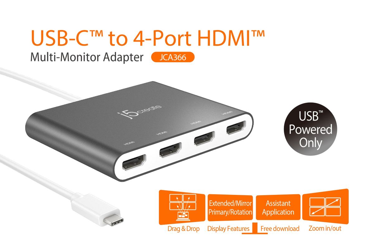 - 1 - JCA366 USB-C® до 4-портового HDMI™ адаптера для декількох моніторів