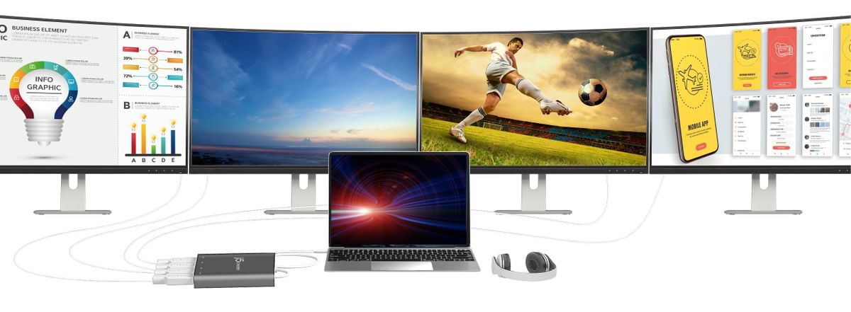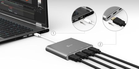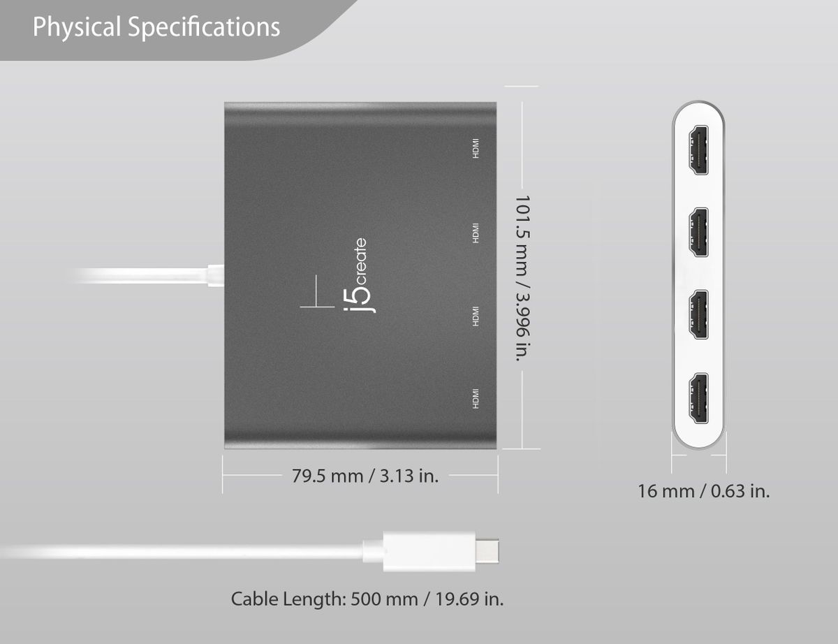Адаптер USB-C® до 4-портового HDMI™ Multi-Monitor Adapter функціонує як зовнішня відеокарта для вашого MacBook® або персонального комп’ютера. Він дозволяє підключити чотири додаткові монітори/дисплеї через порт USB-C®.
