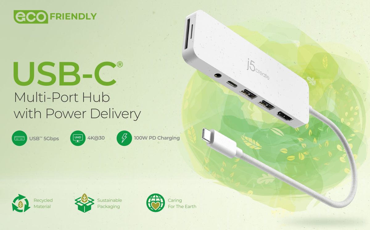 • 1 - Екологічний багатопортовий концентратор USB-C® з функцією Power Delivery JCD373E
