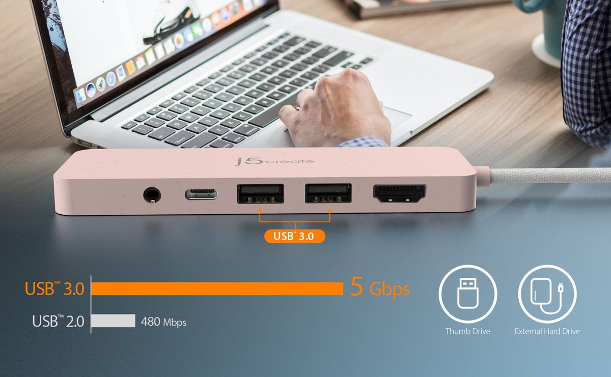 Наш екологічний багатопортовий хаб USB-C® JCD373E з функцією Power Delivery забезпечує додаткові можливості підключення для вашого комп’ютера. Цей кишеньковий мультиадаптер має 2 порти USB™ 3.2 Type-A для підключення периферійних пристроїв, таких як зовнішня клавіатура, миша або флеш-накопичувач USB™. Завдяки високій швидкості передачі даних до 5 Гбіт/с, передача даних відбувається швидко і легко. Порт HDMI™ дозволяє дзеркально відображати або розширювати екран і безпосередньо виводити 4K UHD на HDTV, монітор або проектор.
