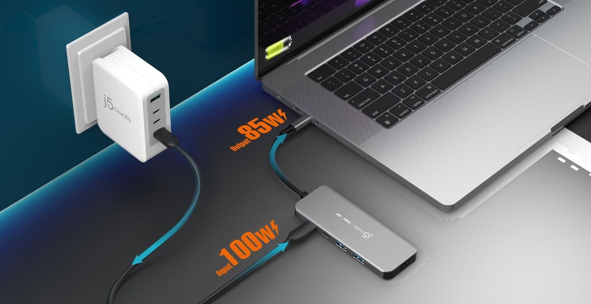 Сумісність із USB-C® Power Delivery для забезпечення швидкої зарядки ноутбука потужністю до 85 Вт.