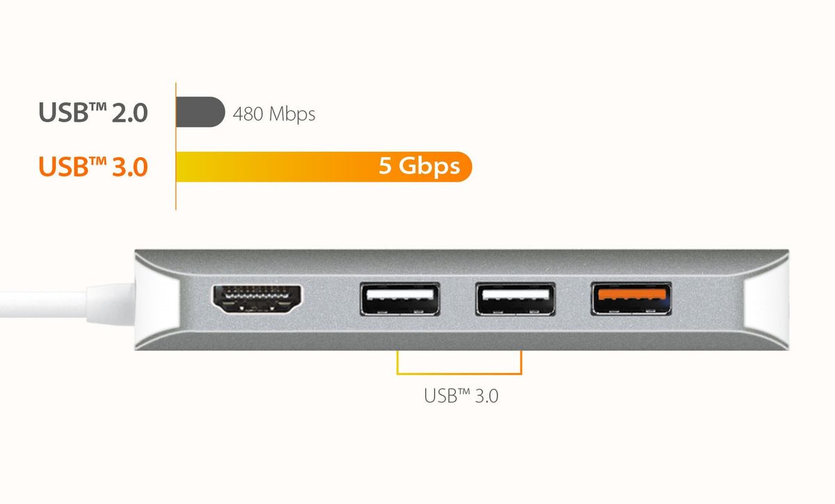 - USB™ 3.1 Gen 1 забезпечує швидкість передачі даних до 5 Гбіт/с, що в 10 разів швидше, ніж USB™ 2.0