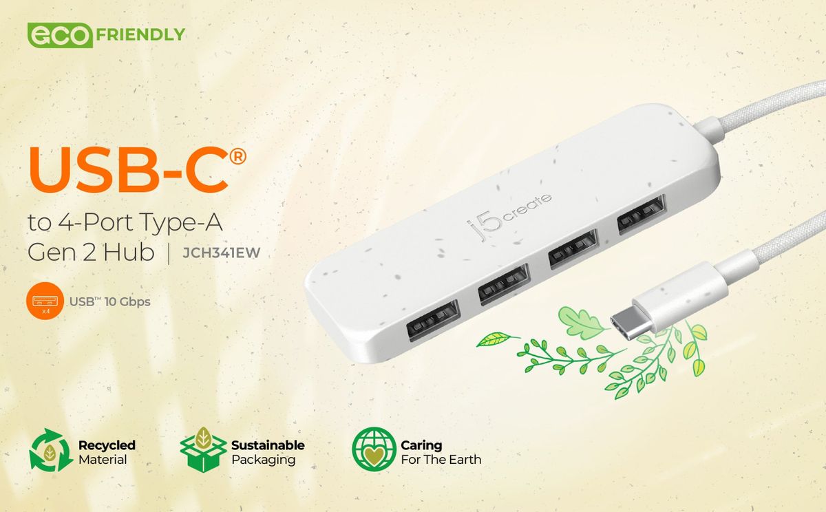 Екологічний хаб USB-C® до 4-портового Type-A Gen 2 j5create JCH341EС забезпечує додаткову можливість підключення до вашого комп’ютера зі швидкістю передачі даних до 10 Гбіт/с. Ці кишенькові хаби, доступні в трьох різних кольорах, дозволяють підключати додаткові USB™-аксесуари для комп’ютера через порт USB-C®.