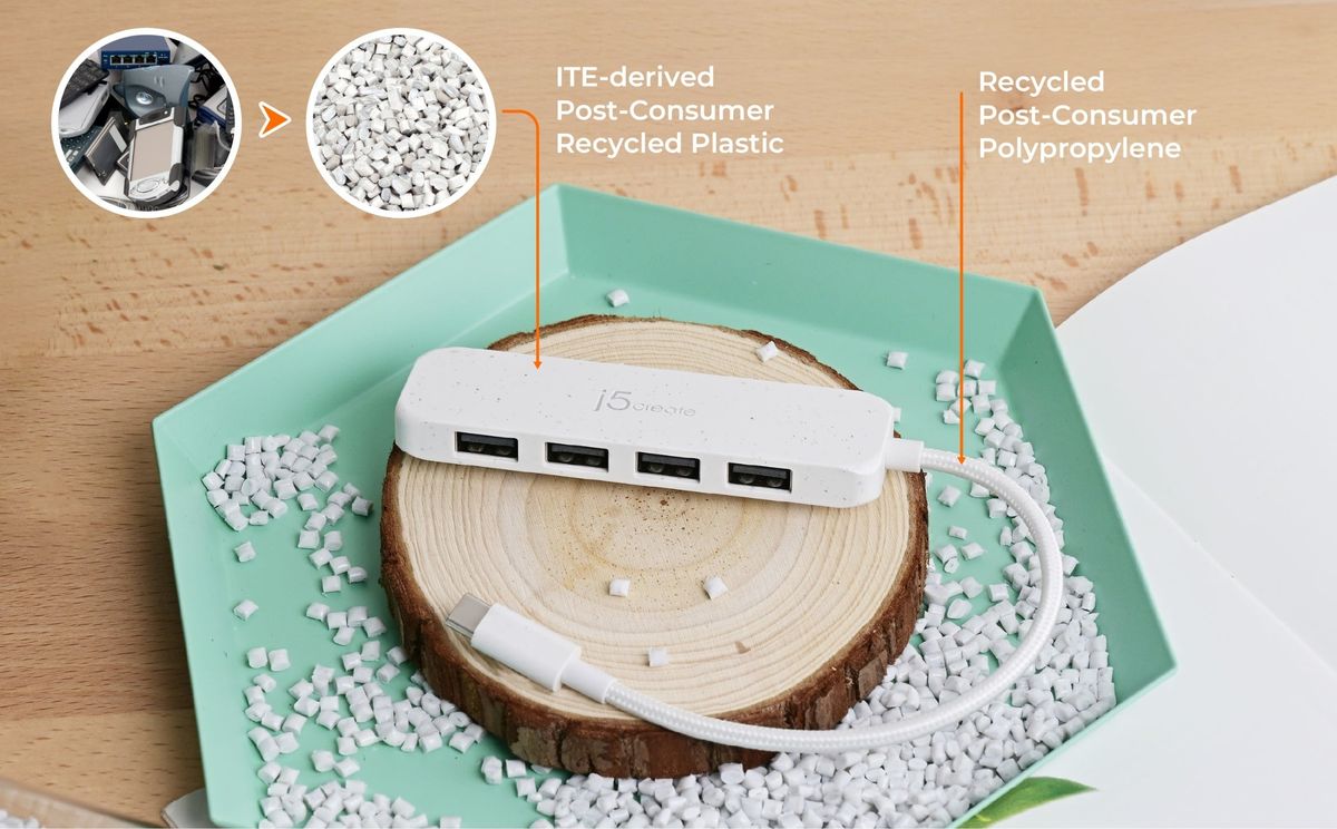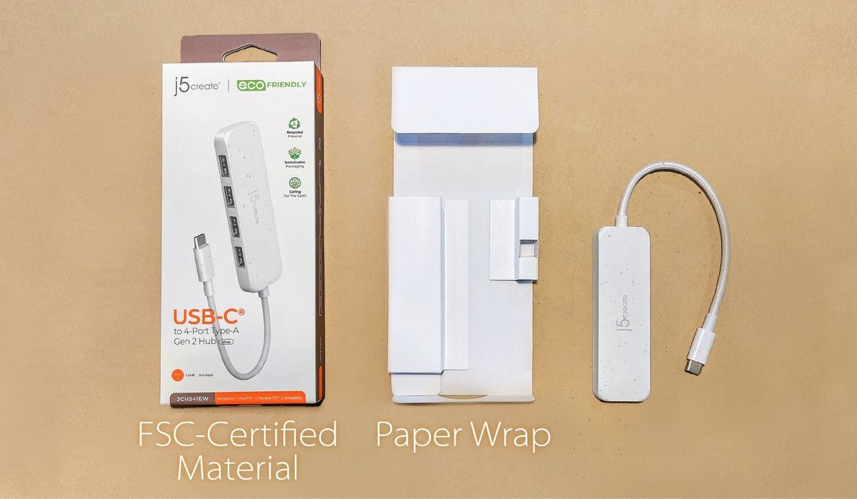 - 1 - Екологічний USB-C® до 4-портового хабу типу A Gen 2 (JCH341E)
