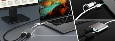 - 1 - Адаптер USB-C® для підключення двох моніторів HDMI™ (JCA365)