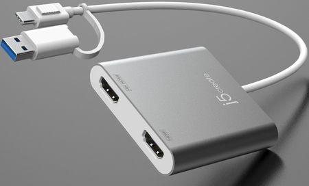 Адаптер JCA365 USB-C® до Dual HDMI™ Multi-Monitor Adapter діє як зовнішня відеокарта для ноутбуків MacBook® або Windows®. Він дозволяє підключити два додаткові дисплеї через порт USB-C®, підвищуючи продуктивність роботи завдяки збільшенню робочої області екрана. Один з портів HDMI™ підтримує роздільну здатність до 4K, а інший — до 2048 x 1152.