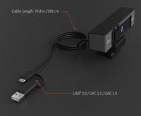 Веб-камера USB™ 4K ULTRA HD з 5-кратним цифровим зумом і пультом дистанційного керування підтримує функцію ePTZ (електронне панорамування, нахил і зум) за допомогою пульта дистанційного керування. Вона підтримує роздільну здатність 4K при 30 Гц і оптимізує відеодзвінки за допомогою 5-кратного цифрового зуму, що робить її ідеальною для зустрічей у великих конференц-залах, а також для використання однією особою. Крім того, веб-камера має вбудовану функцію поліпшення якості зображення при слабкому освітленні, вбудовані подвійний високоякісний мікрофон та два способи відключення об’єктива для забезпечення конфіденційності. Вона оснащена кабелем USB-C® і перехідником на USB™ Type-A для роботи як зі старими, так і з новими пристроями.