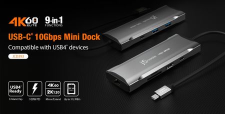 1 - Міні-докстанція JCD393 4K60 Elite USB-C® 10 Гбіт/с