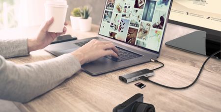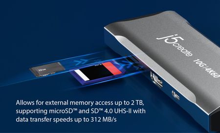 Ця міні-докстанція USB-C® 10 Гбіт/с із підтримкою DisplayPort™ 1.4 дозволяє легко підключити дисплей 4K 60 Гц. Вона має три порти USB™ SuperSpeed 10 Гбіт/с (1 USB-C® і 2 USB™ Type-A) для підключення периферійних пристроїв або заряджання, кардрідер SD™ і microSD™ 4.0 для управління мультимедійними файлами та порт Gigabit Ethernet для доступу до дротової мережі.