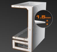 Сталева рама товщиною 1.5 мм підсилює шасі, зберігаючи структурну цілісність навіть при використанні підвісної центральної вентиляції. В результаті виходить смілива, відкрита архітектура, яка залишається жорсткою, надійною і готовою до високопродуктивних збірок.