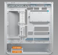 Модуль передньої панелі “3-в-1” — що об’єднує пиловий фільтр, два попередньо встановлених 160-міліметрових вентилятори ARGB PWM і сітчасту панель в один попередньо зібраний блок — дозволяє виконувати технічне обслуговування одним простим кроком. Пиловий фільтр магнітно кріпиться до рами, два 160-мм вентилятори ARGB PWM (попередньо встановлені) встановлюються в раму, попередньо прикріплену до передньої сітчастої панелі, передня сітчаста панель і попередньо прикріплена рама утворюють єдиний закінчений компонент.