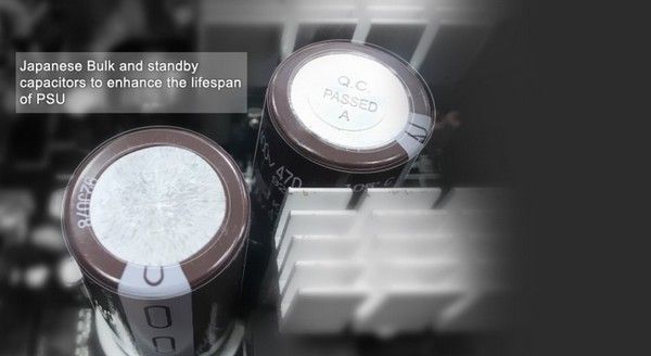 - По-друге, він має надійні японські конденсатори 105°C, які будуть довгі роки забезпечувати стабільність блоку живлення.