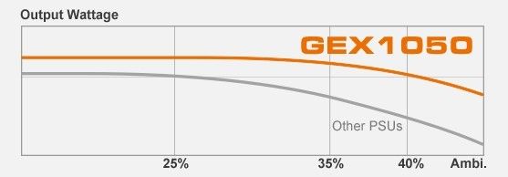 - По-перше, GEX 1050 був розроблений і ретельно протестований для оптимальної роботи в умовах робочої температури 40°C.