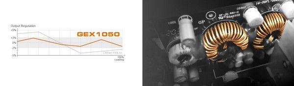 Конструкція GEX LLC, DC-DC і Tri-Sense (3.3 В, 5 В і 12 В) була розроблена для забезпечення стабільної роботи з надзвичайно жорстким 2% регулюванням напруги.
