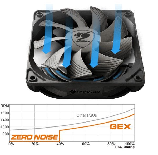 Завдяки спеціальному 120-міліметровому безшумному вентилятору Cougar і поліпшеній рамі, збільшується концентрація повітряного потоку. Форма лопатей вентилятора налаштована таким чином, щоб знизити вібрацію при підвищених навантаженнях, допомагаючи вам насолоджуватися ігровим процесом в тиші.