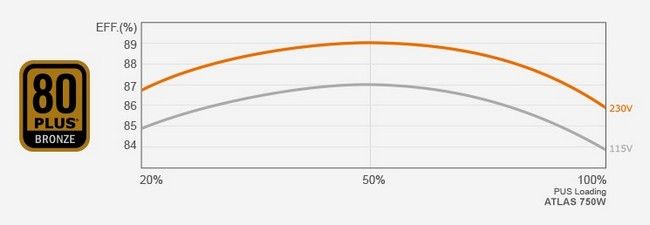 - Сертифікат 80 PLUS Bronze. Перетворення енергії з ККД до 87% для скорочення рахунків за електроенергію