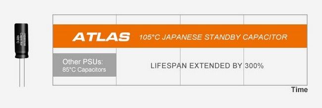 ATLAS дуже надійний, щоб забезпечити безперервну та бездоганну подачу живлення зі стабільно надійними японськими резервними конденсаторами 105ºC.