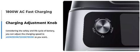 Надшвидке заряджання 1800 Вт може гарантувати, що ви зможете зарядити пристрій до 80% за 1 годину. В той же час ручка регулювання заряджання дозволяє вам регулювати швидкість заряджання на ваш розсуд.