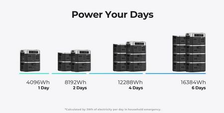 Як розширювана батарея для BP2000, B2000 має ємність 2048 Вт·год з акумулятором, розрахованим на 3500+ циклів зарядки. Підключіть до 7x B2000 до BP2000 і ви отримаєте 16384 Вт·год, чого достатньо, щоб пережити серйозне відключення електроенергії.